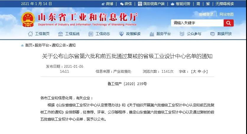 近日,山东省工业和信息化厅公布2020年度山东省第六批省级工业设计中心名单,泰宝信息科技公司和中保康公司成功入选。